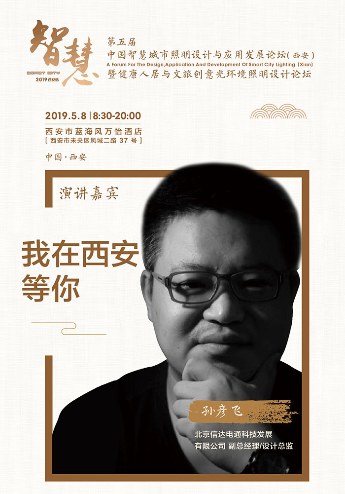 5月8日,由陜西省照明學會、《第一設(shè)計》全媒體平臺聯(lián)合主辦的第五屆中國智慧城市照明設(shè)計與應(yīng)用發(fā)展論壇(西安)暨健康人居與文旅創(chuàng)意光環(huán)境照明設(shè)計論壇在西安藍海風萬怡酒店順利舉行。來自全國各地的行業(yè)大咖、專家學者、照明企業(yè)齊聚西安,共同探討,把脈行業(yè)未來。北京信達電通科技發(fā)展有限公司規(guī)劃設(shè)計總監(jiān)孫彥飛先生出席論壇。