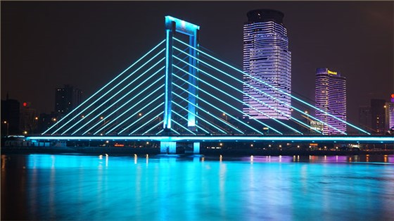 橋體照明在充分考慮岸上、橋上、車行、步行等不同人群的觀看范圍后,最終確定了照明方案,強調(diào)其景觀效果,達到視覺美學(xué),使人們無論是在遠距離遙看,還是近距離觀看,都能夠感受到橋體所帶來的視覺美感。