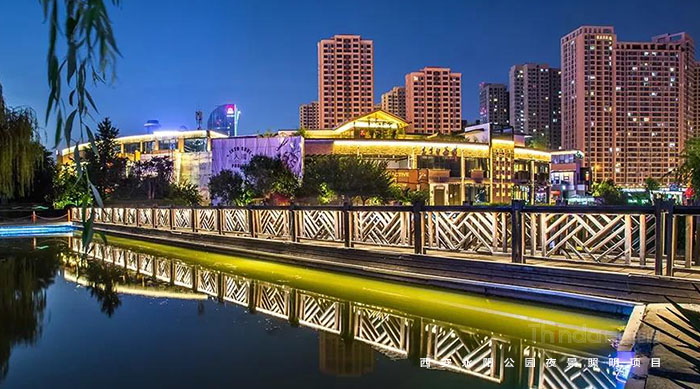 永陽(yáng)公園是西安一個(gè)別開(kāi)生面的科技公園,因地處唐代長(zhǎng)安永陽(yáng)坊而得名,位于西安市丈八東路和西灃公路十字路口,是由西安高新技術(shù)產(chǎn)業(yè)開(kāi)發(fā)區(qū)興建,占地10萬(wàn)平方米,2006年對(duì)外開(kāi)放。繼2016年完成西安高新區(qū)夜景亮化設(shè)計(jì)之后,信達(dá)電通對(duì)永陽(yáng)公園進(jìn)行夜景照明規(guī)劃設(shè)計(jì)。