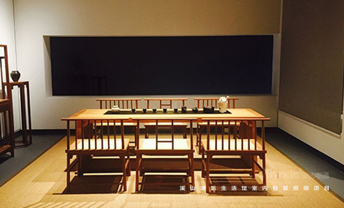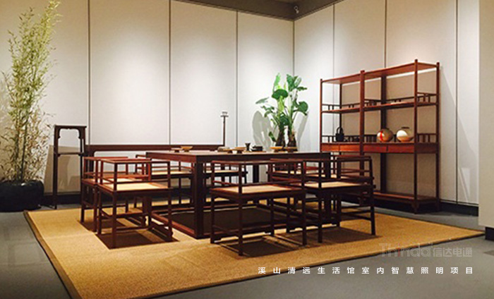 溪山清遠生活館是其公司在北京朝陽區設立的明式、宋代家具主題生活館。溪山清遠探究家具,是探究一種回歸。俗韻已行,塵網誤落,陶淵明欣慨之意,宜適今日。看紛紛擾擾,無休無歇,勞心廢形,永無止息。溪山清遠就是在居住意境上去建設一條回歸的曲徑,精簡,守靜,歸真。信達電通是溪山清遠生活館室內空間照明的設計及施工、控制系統一體化服務單位。