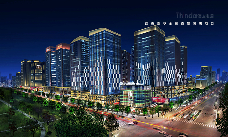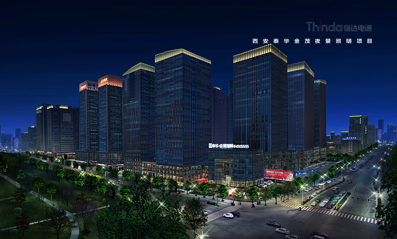 泰華·金貿(mào)國際位于西安高新區(qū)金融圈與商務(wù)圈的交匯地帶,與唐城墻遺址公園僅一路之隔。有西安首創(chuàng)山水云陶筑玻璃幕墻,高端商務(wù)會所,啟封現(xiàn)代商務(wù)的新風(fēng)范。信達(dá)根據(jù)辦公樓的戶外亮化照明設(shè)計(jì)要素和泰華·金貿(mào)國際建筑景觀特點(diǎn)以及所處的地理位置,對泰華·金貿(mào)國際進(jìn)行戶外亮化照明設(shè)計(jì)改造工作。改變了泰華·金貿(mào)國際之前的色系昏暗現(xiàn)狀,增加了建筑的外立面整體效果及廣告照明的效果,洗亮泰華·金貿(mào)國際建筑頂部,凸顯天際效果,使泰華·金貿(mào)國際成為西安夜色下一道亮麗的風(fēng)景。